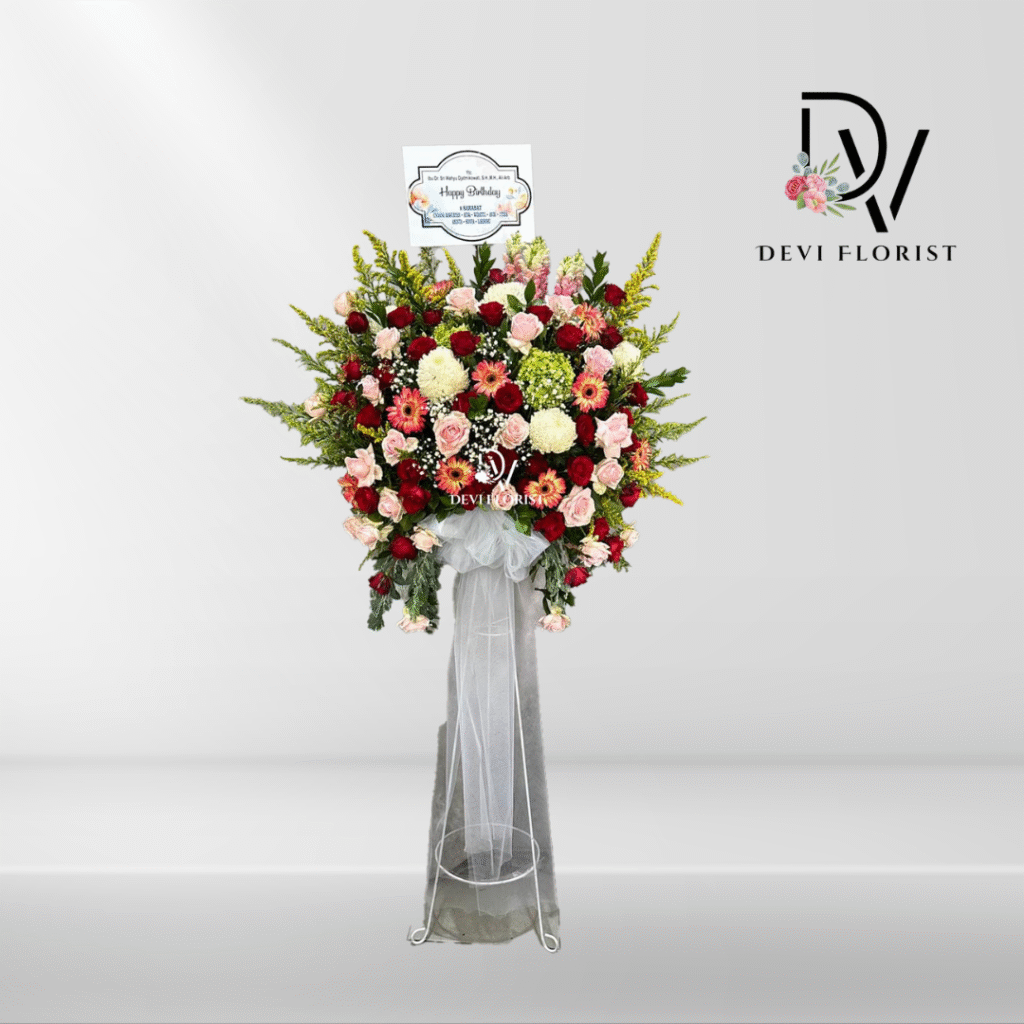 Devi Florist siap membantu Anda mewujudkan berbagai rangkaian bunga yang dirancang khusus untuk setiap momen istimewa—mulai dari pernikahan, ulang tahun, duka cita, grand opening, hingga hadiah personal. Semua rangkaian dapat dibuat secara custom, sesuai dengan tema, ukuran, dan detail yang Anda inginkan.
